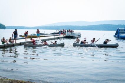 Most of the week was dominated by our annual Olympics. The camp was broken into eight countries, and they competed day and night for the title. Day one began with a swim meet, a triathlon, a track meet and separate sporting events like hockey, one-pitch softball, flag football, pickleball and golf. We also held some larger, all-team events like the waterfront rotation which included a timed trial on the inflatables, a canoe tug-of-war, paddleboard relay, and a game of greasy watermelon.