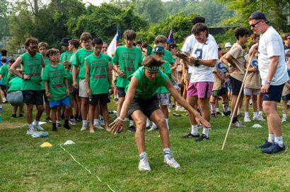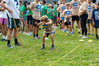 That afternoon, we had the Grand Marathon, which is a massive relay race with 38 stations such as wheelbarrow, volleyball serve, a three-legged race, eating a jelly sandwich, and much more. Every camper on every team has a role in the Grand Marathon. The remaining decathlon events also took place like pull-ups and shot put. The rest of the day was spent finishing team banners, cheers, and songs.