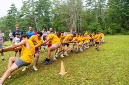 Day two of the Olympics started with a lake swim at 6:30 AM followed by a marathon, an all-team tug of war, and some separate sporting events. In the afternoon, everyone reported to the pool for an all-team swim relay followed by additional smaller events like a one-pitch tournament, high ropes relay challenge, and fishing.